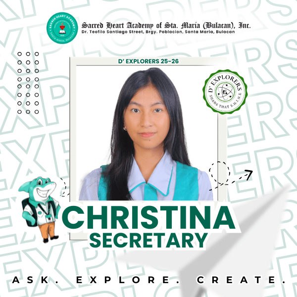 D’Explorers Organization Officers 2025 News Bites D’Explorers Organization Officers 2025 SHA Administrator Aug 15, 2025 292 views 0 comments Previous Next Philippine Association of Colleges and Universities Commission on Accreditation (PACUCOA) SHAns in Action Officers Related Posts Curiosity Lab D’ Explorers Feb 25, 2026 53 views Sports Fest 2025 I Hearts in Motion, Champion in Actions! Feb 23, 2026 67 views Guhit Shans Feb 20, 2026 60 views Gazette Patnubay Feb 07, 2026 43 views Math Month Celebration Feb 04, 2026 44 views
